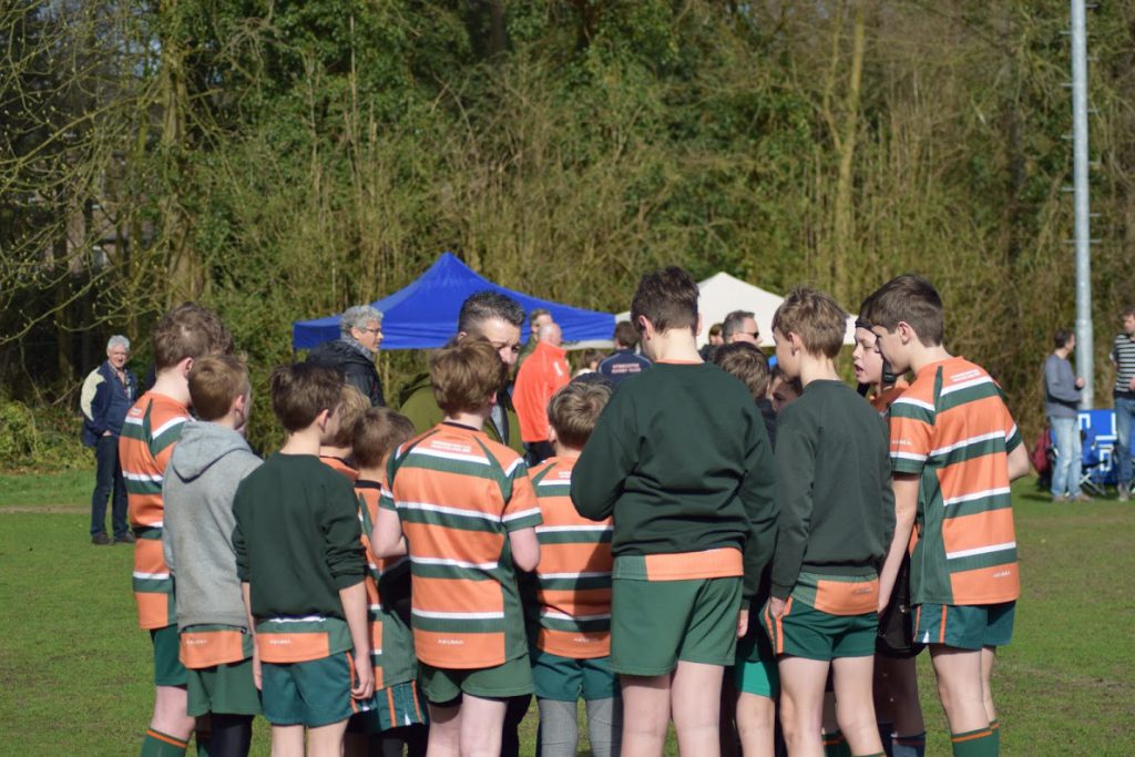 De laatste wedstrijd tegen RC Breda wachtte om te proberen met een vijfde plaats deze verder fijne dag af te sluiten. Relaxed werd door de mannen in de schaduw van de bomenrij naast het veld het tijdsstip afgewacht om het laatste strijdtoneel van de dag te betreden. Deze wedstrijd begon rommelig. RC Breda kickte vanaf een witte lijn wat zeker niet de blauwe middenlijn was. Die lag daar meters achter. Dus zaten de RRC mini mannen gelijk in de verdrukking ver in het eigen verdedigingsgebied. Het veld was ook kleiner dan een normaal mini veld en met een chronisch tekort aan voorwaartsen werd er wel heroïsch gevochten maar ontbrak het fysieke geweld. Door dit veel te kleine veld werd het ook erg rommelig met weinig speelruimte waardoor de lijn minder uitgespeeld kon worden en dus was er geen mogelijkheid om de in het team van de dag aanwezige snelheid te gebruiken. Het leek eigenlijk meer op een soort van grabbelen en worstelen. Deze worstelpartij werd schijnbaar een van de begeleiders van RC Breda teveel. Luid vloekend liep deze beste man op een gegeven moment het veld op. Een meer dan prachtig voorbeeld over hoe het niet moet. Een zonnesteek als excuus kon het niet zijn want hij stond in de schaduw van de bomenrij en in deze schaduw stopte de beste man ook niet gelijk om tegen onze coach van de dag Richard door te blijven gaan. Maar meer dan ongepast en rugby vreemd gedrag. Zeker in de jeugd categorie. Misschien zat de frustratie nog hoog door het eerder in het seizoen gewonnen Brakken toernooi door onze mini helden. Hoe dan ook is het een overwinning van onze mannen om gewoon door te gaan met de wedstrijd maar de impact van deze naar ik hoop voor RC Breda in het bijzonder en voor Rugby Nederland in zijn algemeenheid, tijdelijke vorm van volledige ontoerekeningsvatbaarheid van deze lokale dissonant was groot op onze kids.