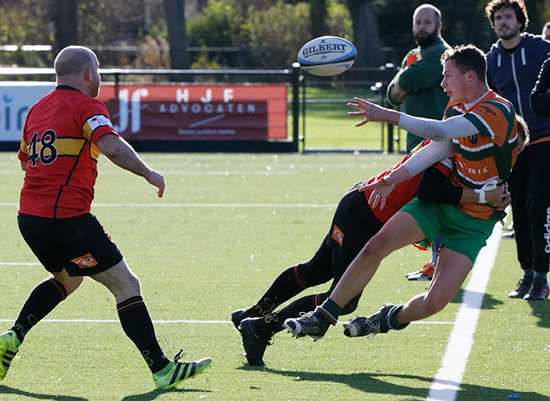 Het was snel duidelijk dat in balbezit de Dukes gevaarlijk waren en dat werd omgezet in punten na een snelle counter over de wing. Zonder aangeraakt te worden kon hun nummer 11 de benen strekken en de bal in de hoek van het try-gebied neerdrukken. Na deze domper kon het team de rug rechten en de tegenstander onder druk houden, met als beloning dat een snel genomen penalty in hun 22 door Sebas ontvangen werd en over de lijn werd gecrashed. In de rust heerste het gevoel de bovenhand te hebben en voelde het alsof het team deze pot binnen ging halen. Tijdens een onwijs fysieke 2de helft speelde Rotterdam veel het korte spel om de ruck heen en forceerde door een goede run van Pieter nog een try, wat ons de voorsprong gaf. Na pech te hebben gehad met de conversies, viel de bal na een goede pick-and-go try van Yassin ook nog eens van de tee af en bleef de stand staan op 15-5. Een zware en mooie wedstrijd tegen een goede tegenstander. Groot compliment aan het team.
