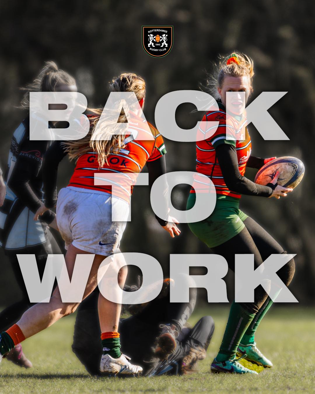 Het was hard werken, heel hard werken. Blessures aan de kant van de Rotterdammers, balbezit, aanvallen en verdedigen golfden heen en weer, al speelde de eerste helft zich grotendeels af aan de Rotterdamse kant van het veld. Na ruim tien minuten brak Den Haag als eerste door voor een try, maar Rotterdam sloeg niet veel later terug.