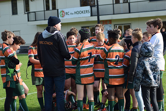 Oemoemenoe had beduidend meer balbezit en stond ook sterker in de scrum. We bevonden ons op glad ijs. Uiteindelijk wisten ze via de zijkant er doorheen te bonken, en scoorde ze een try (24-12). Dat lieten we niet in de kouwe kleren zitten. Noa sprint op tijdens de kick-off en weet direct de bal te stellen voordat die ook maar gevangen kan worden. Een mooie actie om de eerste helft mee af te sluiten.